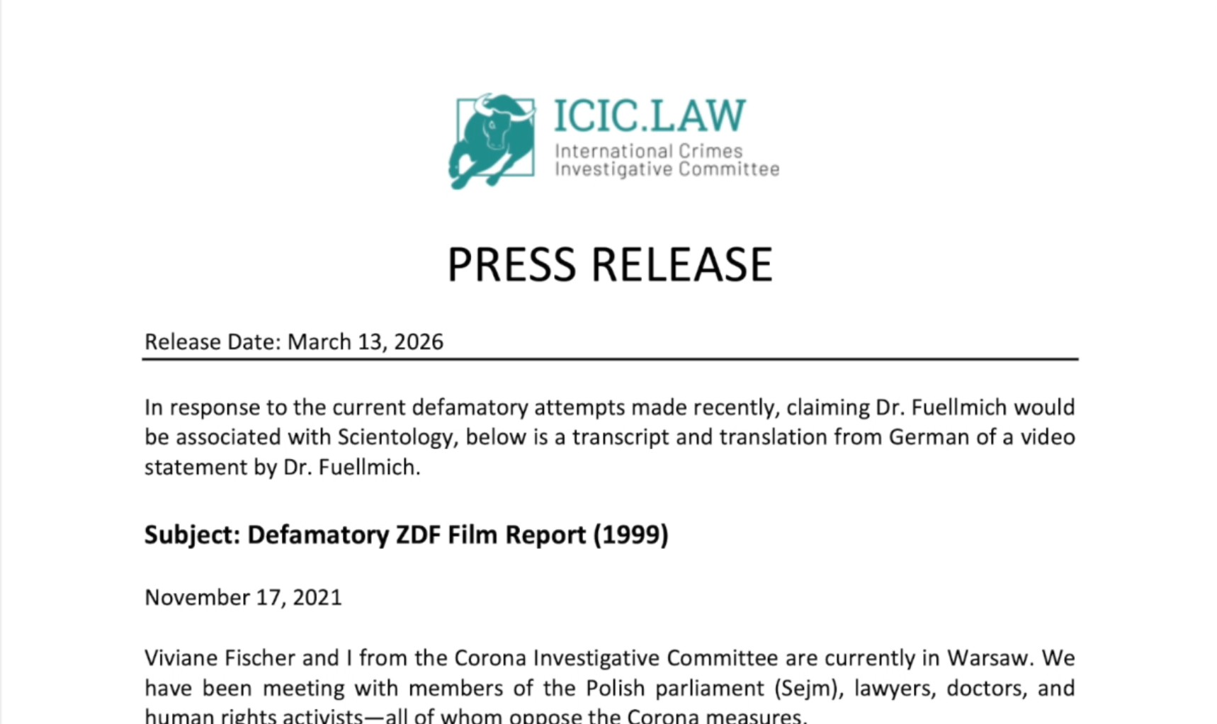 Dr. Reiner Fuellmich and his team are continuing the work which begun in the Corona Committee in a totally new framework: